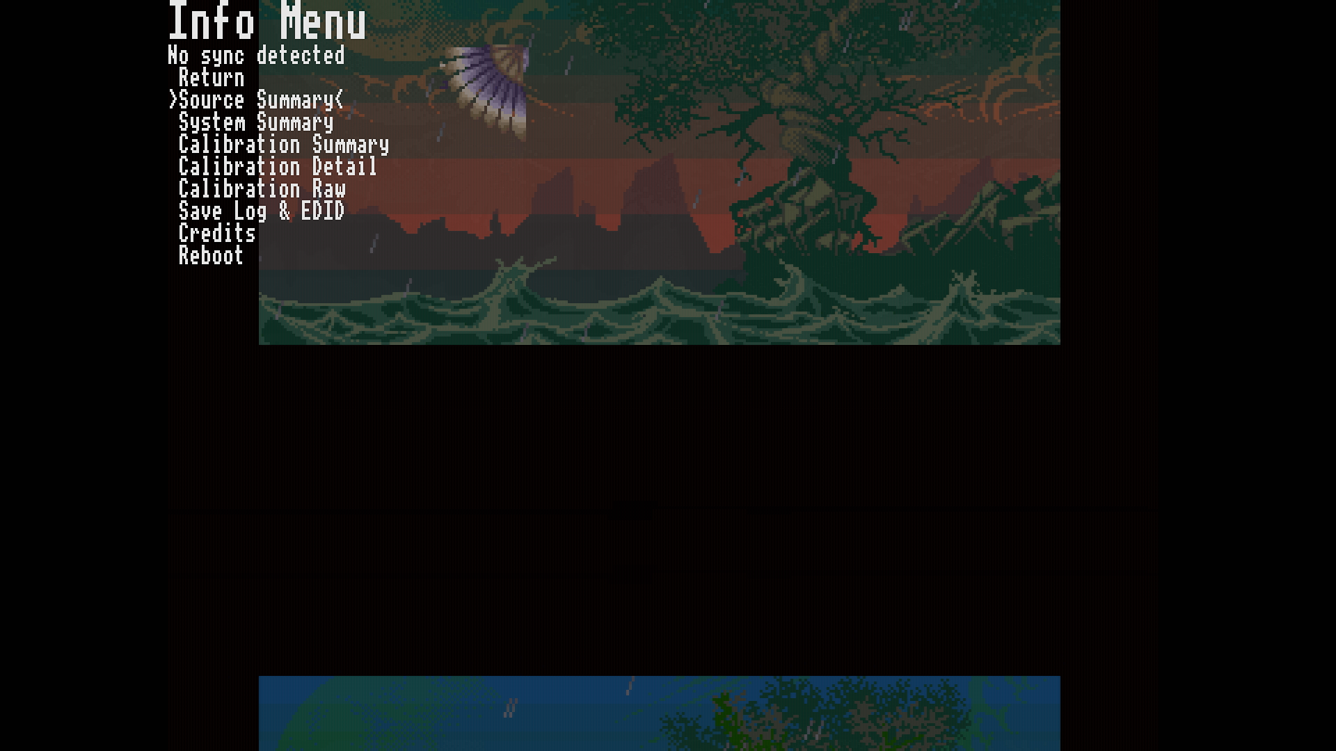 Hiába indítottam újra menüből a konvertert, próbáltam a felbontást és a képfrissítést is változtatni, de sajnos nem akart helyreállni a dolog, még a gép RESET-elését, illetve rövid áramtalanítását követően sem. Ez már az indítóképernyőn látszott: