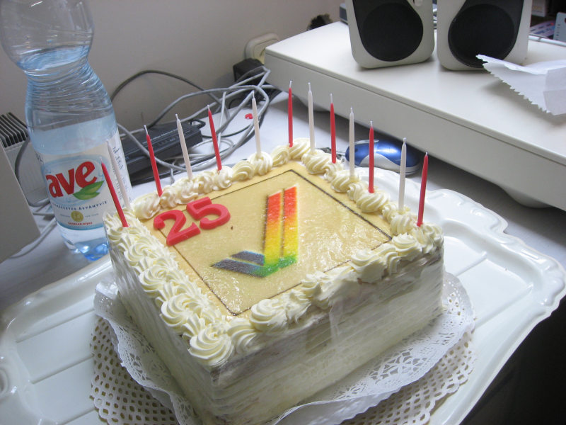 Hogy repul az ido. A 25-os szamokra nem is emlekeztem a tortan. Aki esetleg nem fedezi fel benne: a torta teteje az A1000 elolapi logojanak a fenykeperol keszult.