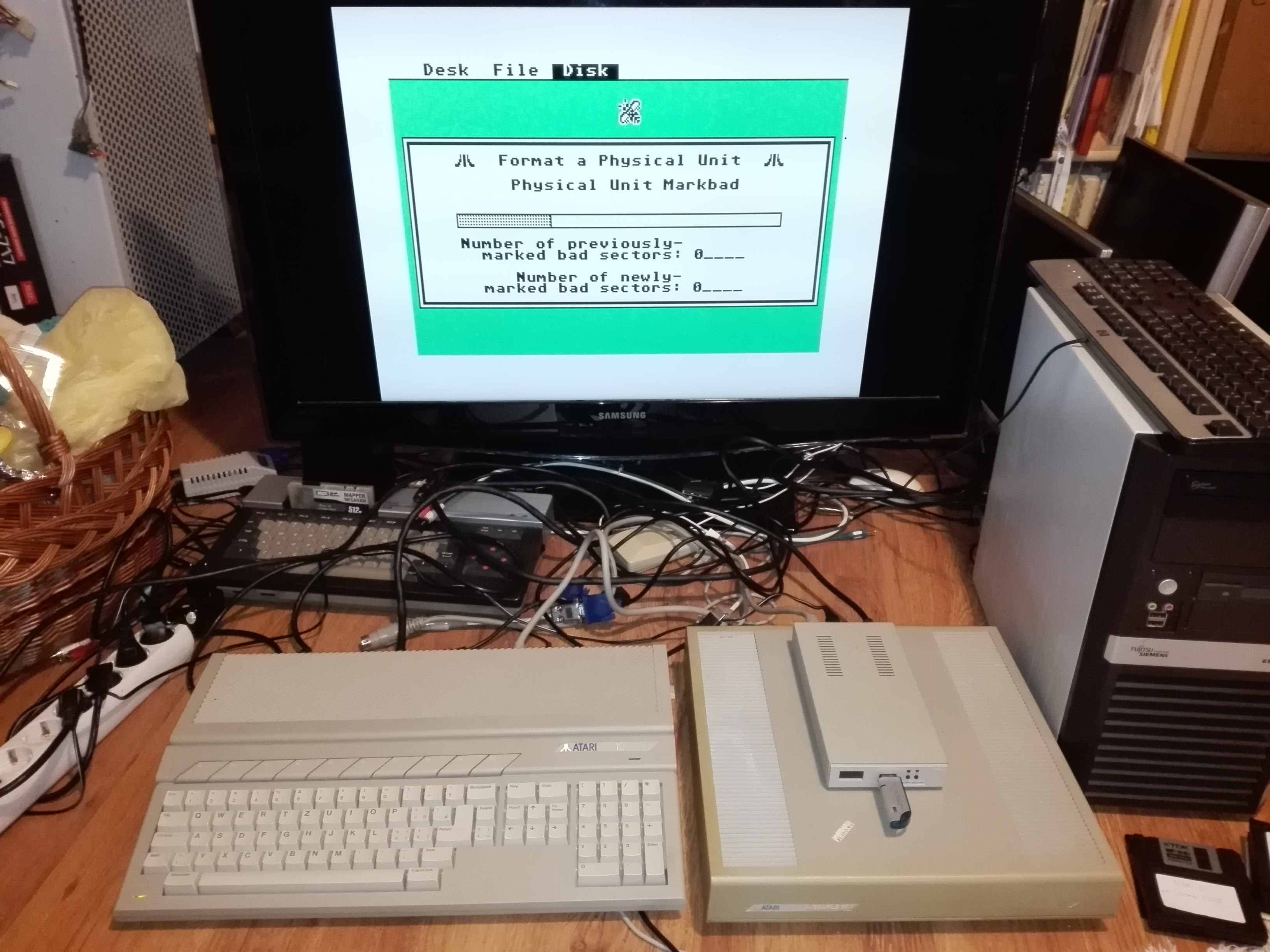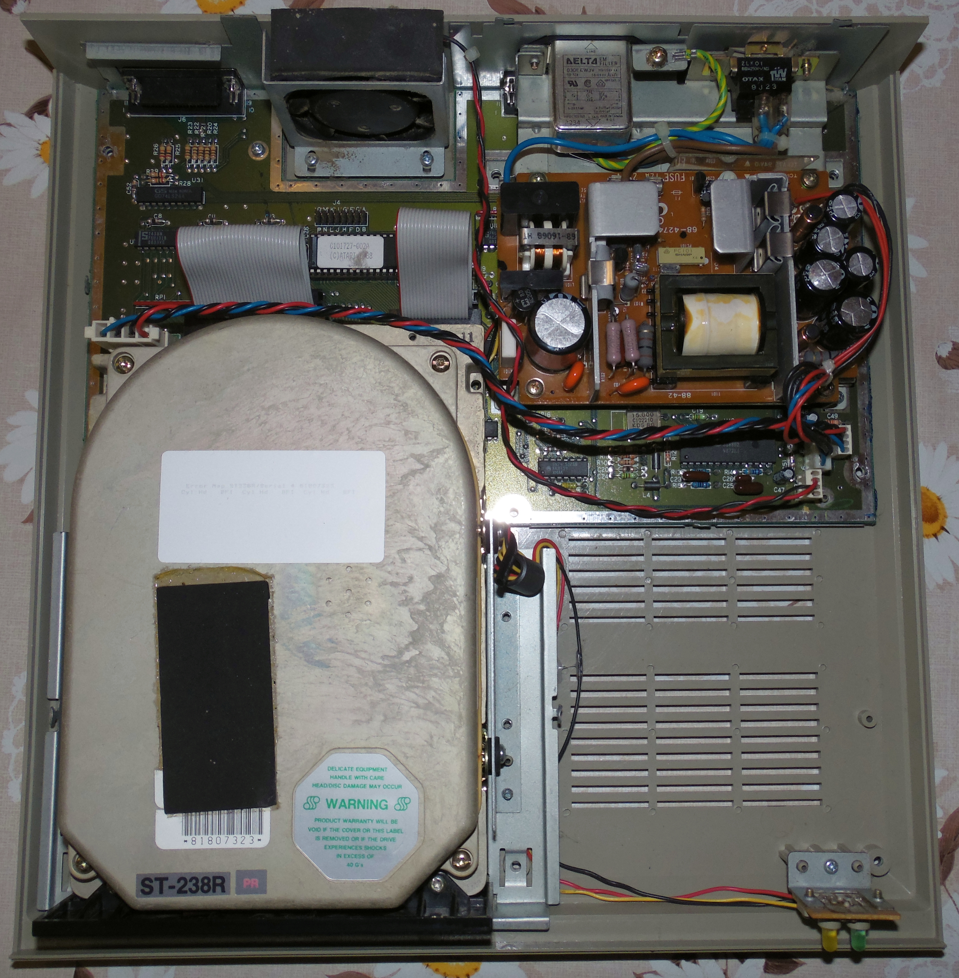 Küldök én több képet a HDD-ről, kívül-belül fotóztam, az a biztos. A konfigról is van egy működés közben, a háttérben megbúvó MSX-ért elnézést kérek, az nem része az Atari hardverparknak...